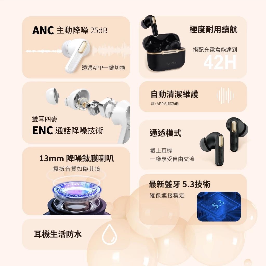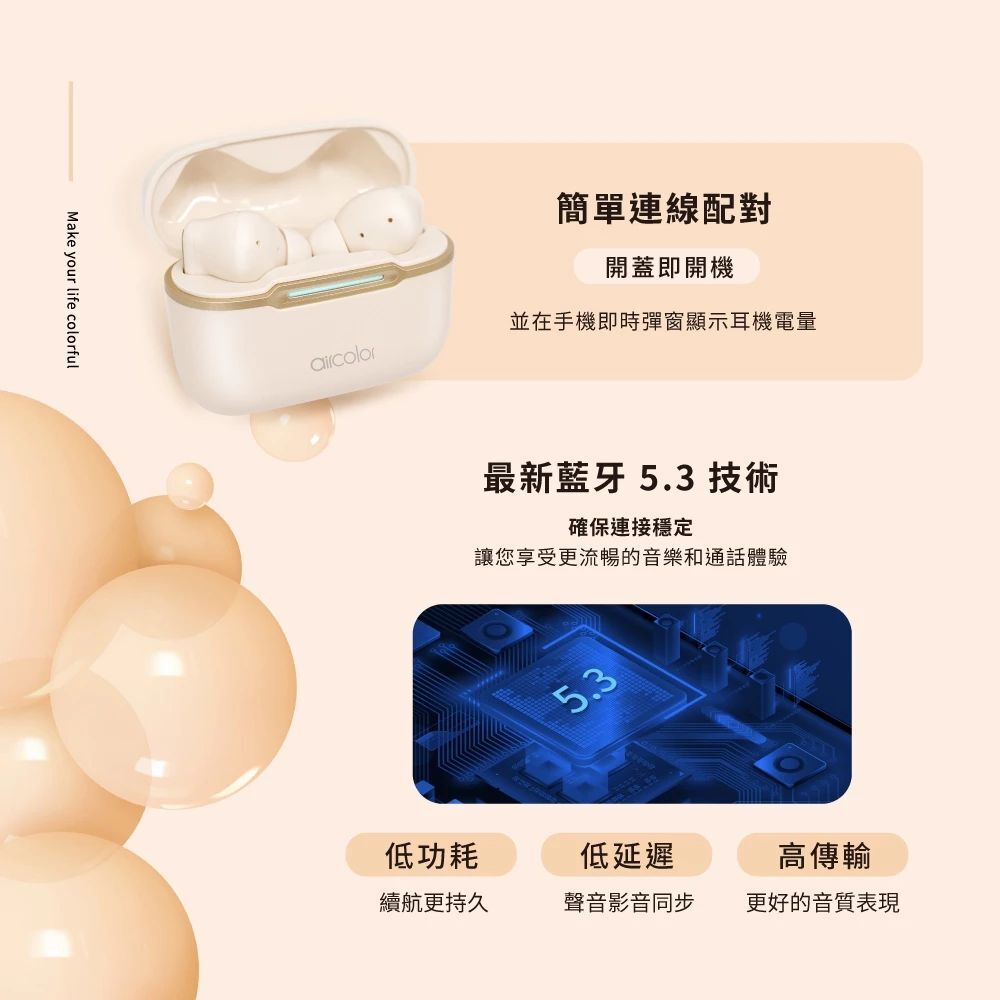 ● 最新藍牙5.3技術|最新藍牙技術確保連接穩定且低延遲,讓您享受更流暢的音樂和通話體驗。