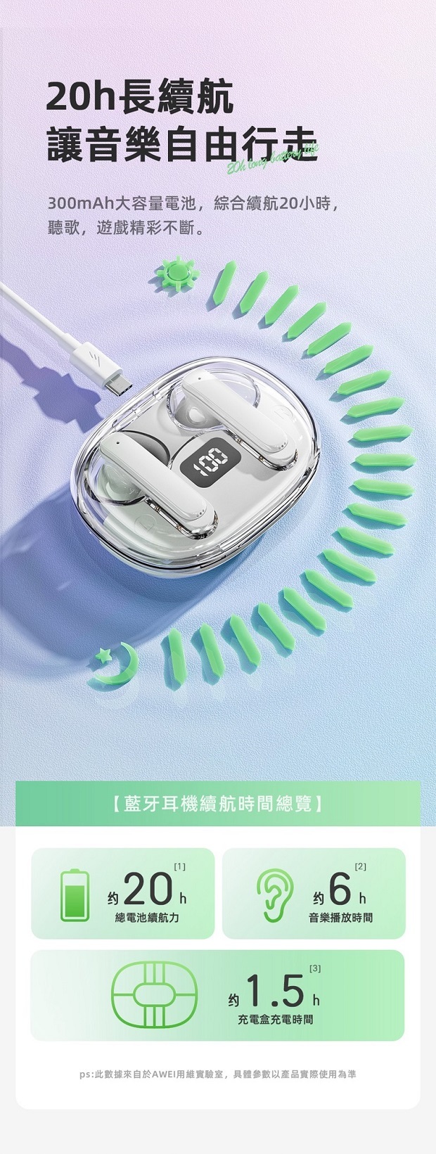 ✔充電倉容量:300mAh