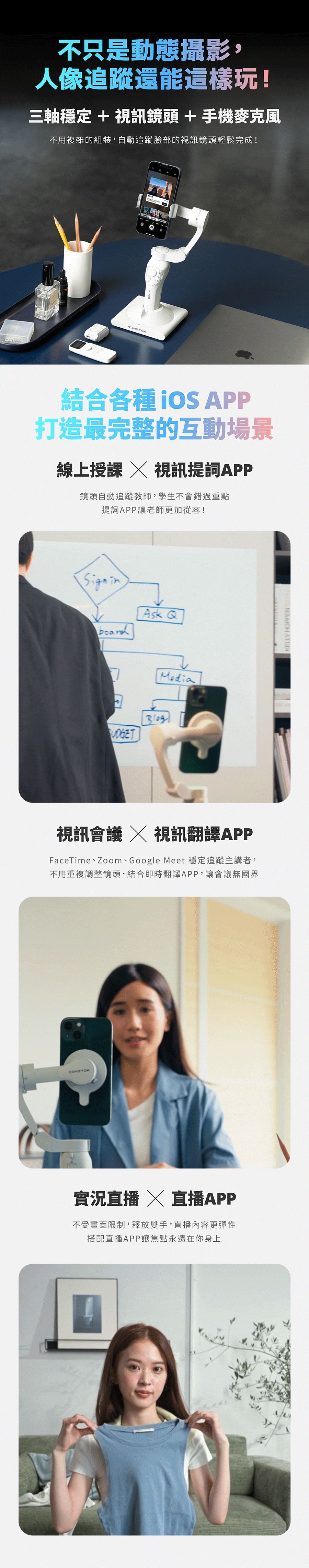 ・除iPhone原生相機,亦適用200種以上iOS App,例如:IG、TikTok...等,隨手拍零失敗