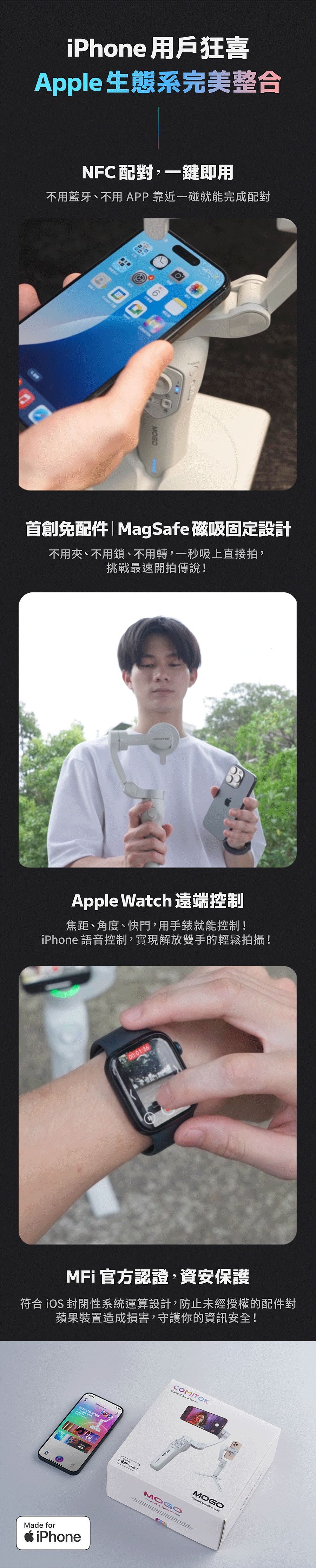 ・完美融入Apple 生態系:支援MagSafe 磁吸、Apple Watch 遠端遙控,也支援OTA隨iPhone升級探索更多體驗