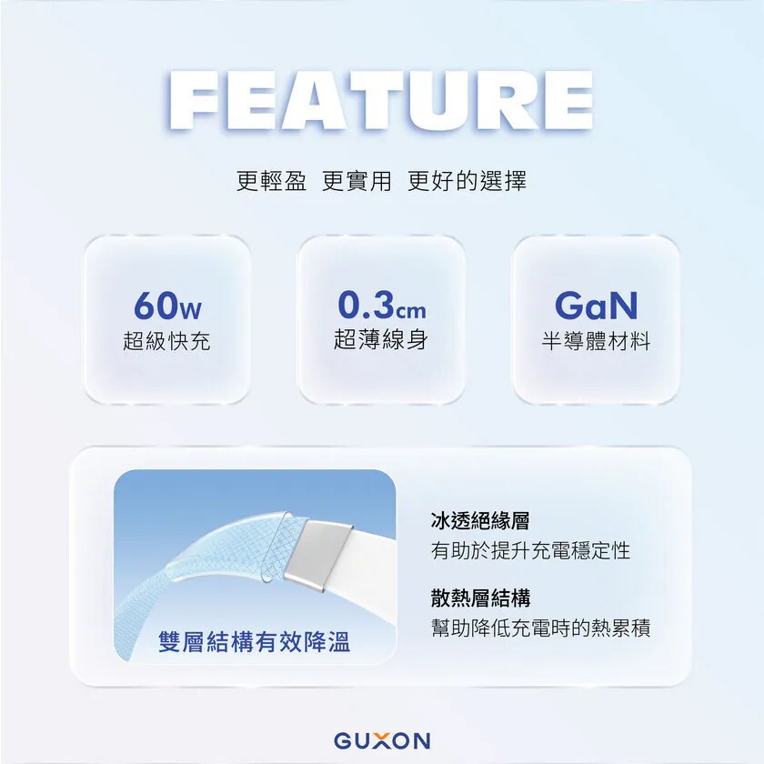 GUXON JELLY.Q 60W 果凍快充扁扁線 x 1