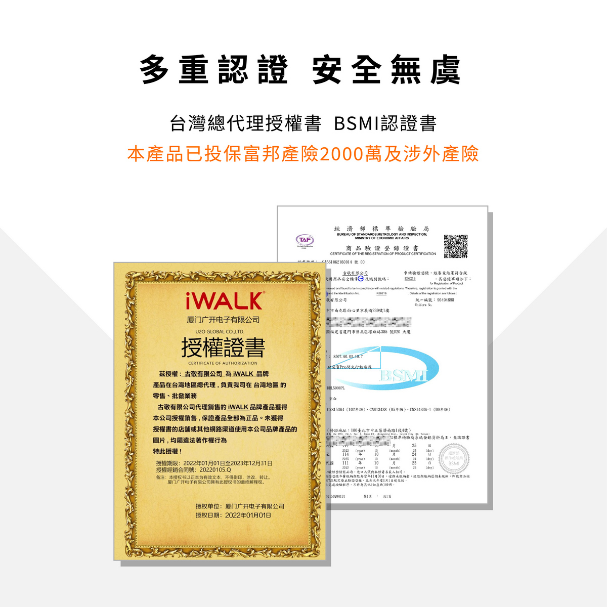 產品已投保富邦產險2000萬及涉外產險