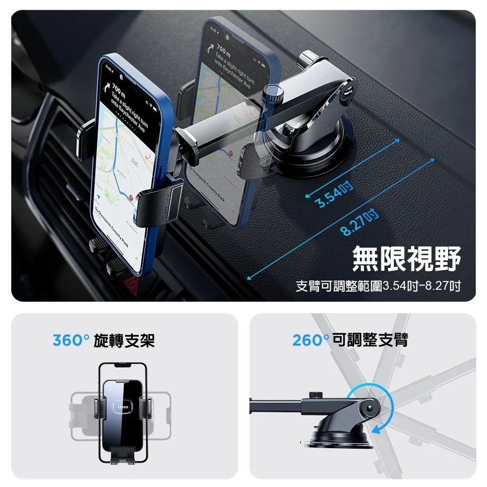 ◾360度旋轉支架,可調整3.54吋~8.27吋