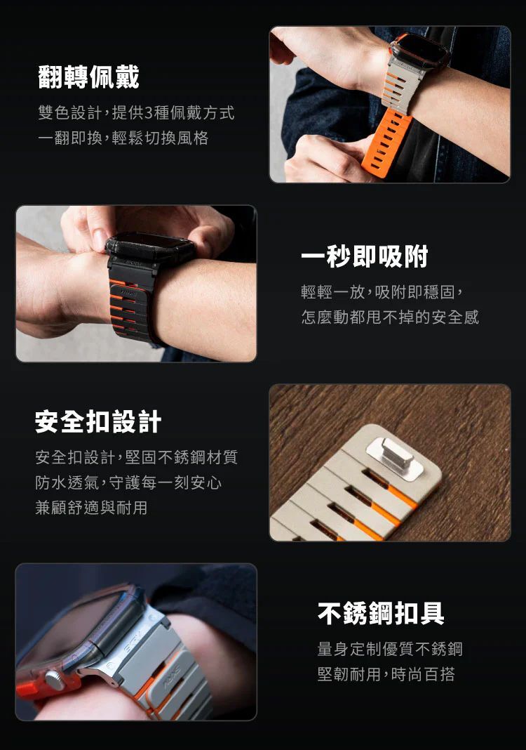 極簡雙色設計,搭配大膽的色塊拼接與磁性安全扣,GEMINI 錶帶專為追求時尚與性能兼具的您打造。不論是運動或日常穿搭,皆能輕鬆展現獨特風格。