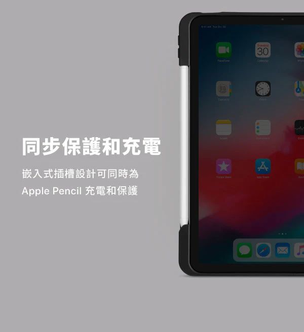 2. 保護套筆槽為裸機 Apple Pencil 設計,不建議使用 Apple Pencil 筆套。