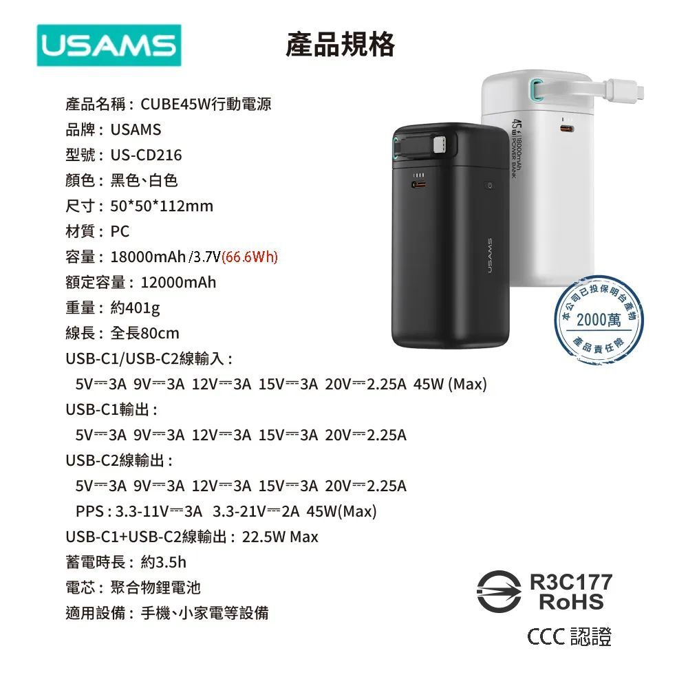 . 大容量18000mAh一次充電,大大延長了使用時間,避免重複充電造成時間浪費